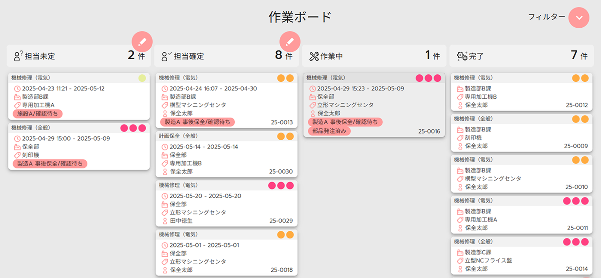 点検・修繕などの保全作業を日程/担当者/手順書とともに一元管